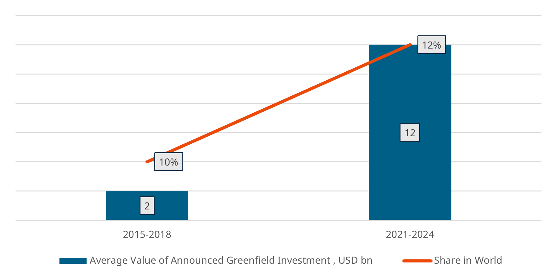 Semiconductors Average Share in Total Greenfield Investment, 2021-2024