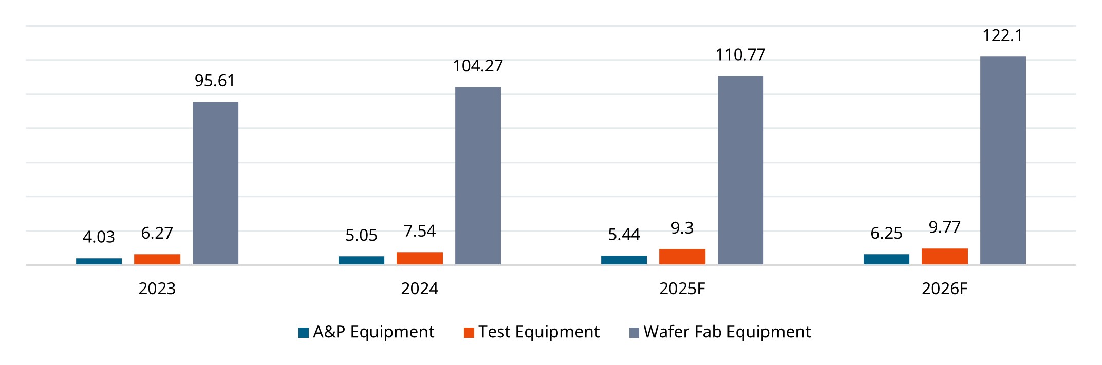 Semiconductor association SEMI expects global sales of total semiconductor manufacturing equipment by original equipment manufacturers (OEMs) to hit a record USD 125.5bn in 2025, with a further increase to USD 138.1bn the following year. Back-end equipment, an area where ASEAN excels, is set for particularly strong momentum, with test equipment revenue estimated at USD 9.3bn in 2025.