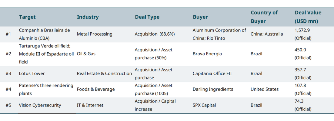 January 2026 TOP M&A deals in Brazil market